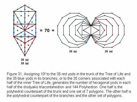 (7+7) enfolded polygons (Fig. 32). Assigning the number 33 to each yod generates the number of yods