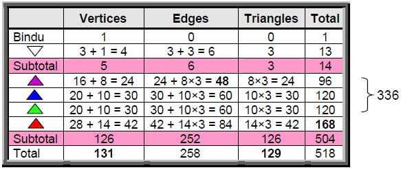 centre is a point, or bindu, representing the Absolute. Table 1 shows the numbers of vertices, edges and triangles in the Sri
