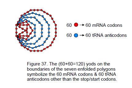 The 34 vertices & faces in each half correspond to the 34 nonstop codons in mRNA that