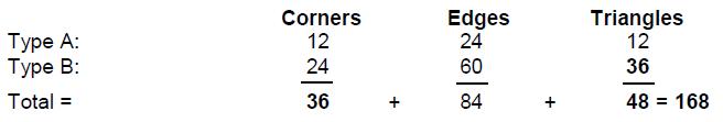 There are 84 edges and 84 corners & triangles. This 84:84 division of