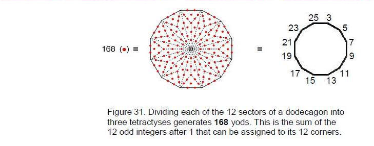 Malkuth, 168 yods other than corners of the dodecagon surrounding the